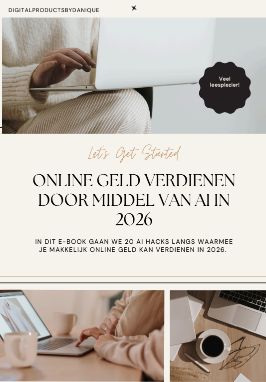 Wil jij leren hoe je in 2026 online geld kunt verdienen met AI, zonder dat je een expert hoeft te zijn? Dit e-book laat je stap voor stap zien 20 makkelijke en directe hacks om AI slim in te zetten. Van TikTok-video’s en YouTube Shorts, tot e-books, templates, en automatiseringen die je side hustle een boost geven.